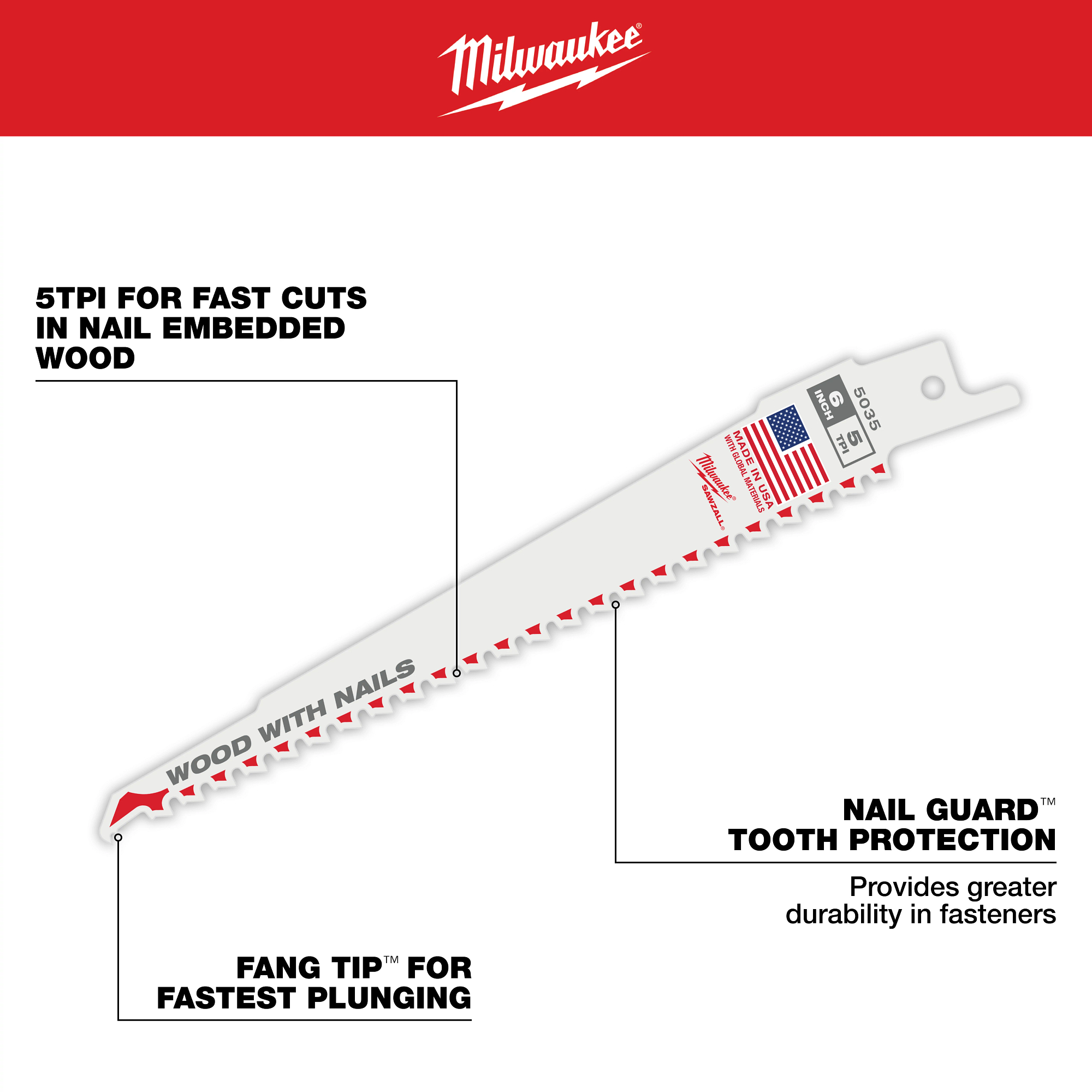 Super SAWZALL blades are made with Matrix II high speed steel teeth containing 8 percent cobalt to keep a sharper tooth edge longer. The tough bi-metal design allows faster cutting, longer life blades that can bend without shattering. Milwaukee designs and manufactures SAWZALL blades for the toughest professional applications. Materials, tooth configuration and heat treating are designed to maximize performance in specific cutting applications. Durable, long life blades are the goal of every blade we make. This blade has a 1/2 in. universal tang that fits all sawmills and standard competitive saws.
