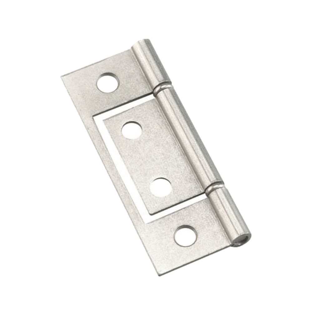 Onward Classic Bi-Fold Hinge, Non-Mortise, Door Leaf Thickness: 1.4 mm, Frame Leaf Thickness: 1.4 mm, Knuckle Diameter: 6.5 mm, Pin Type: Fixed, Mounting Hole Diameter: 7 mm, Steel, Satin Nickel, Dimensions: 1-1/4 in W x 3 in H, Includes: Wood Screw