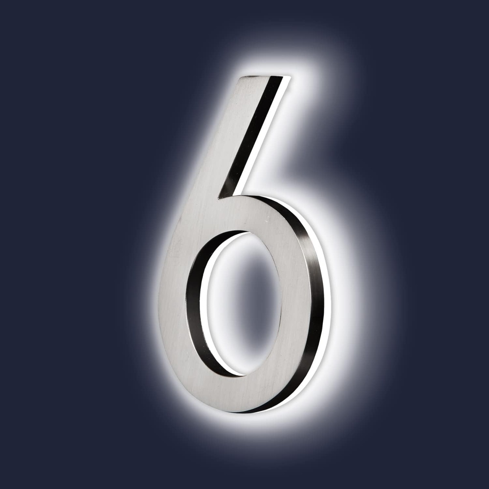 The LED backlit house number by PRO-DF will make your address visible, day and night. It features an elegant satin nickel finish and the latest LED technology. The backlit design improves considerably the visibility at night (visible over 10 ft.) with a nice contemporary glow behind the number. The light is projected onto the address plaque or onto the wall surface, depending on the installation. On the back, it has built-in spacers raising the number 1/2 in. from the surface, for a unique floating effect. Made from high quality zinc along with frosted ABS plastic. The LED house number is completely weatherproof and rustproof, it will resist to our harsh weather conditions. Proudly designed in Canada. Low Voltage – 12 to 18-Volt. Address plaques and optional wires are sold separately. Instruction, drilling template and mounting hardware are included.