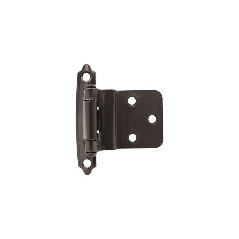 Amerock BP3428 Functional Hardware 3/8 Inch Inset Surface Mount Cabinet Door Hinge with 105 Degree Opening Angle and Self Close Function – Pair Features:Includes two (2) hinges in each orderConstructed of high quality steel for durability and dependabilityCovered by Amerock’s limited lifetime manufacturer warrantySelf closing function will allow your cabinet door to close firmly and securelyDesigned for a 105 degree opening angleAll necessary mounting hardware is includedSpecifications:Width: 2″Length: 2-1/4″Hinge Mount: Partial InsetOpening Angle: 105Material: SteelInstallation Type: Screws Surface Mount Hinges Oil Rubbed Bronze.