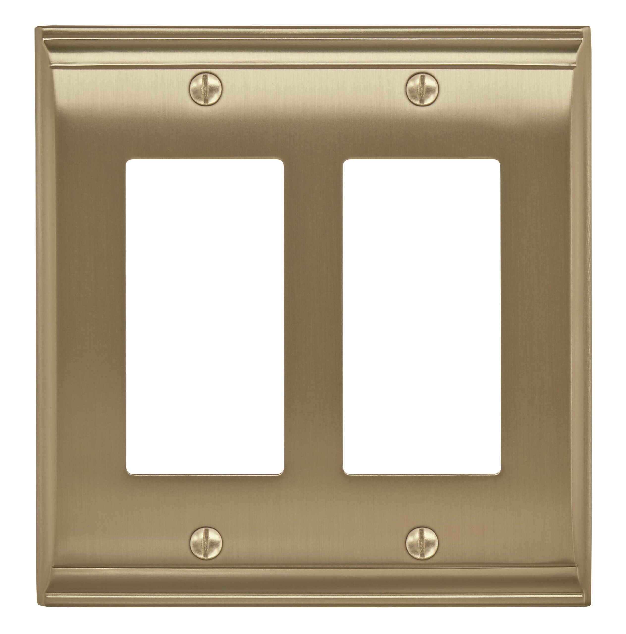 The Amerock Candler 2-Decora Wall Plate is finished in Golden Champagne. With strong lines and soft curves, the Candler collection offers a look of enduring class and timeless character. Golden Champagne: raise a toast to this rich metallic finish. Warm and inviting without being brassy and featuring hints of silver in reflective light, this attractive hue elevates designs with enviable versatility. Use for a soft and elegant touch on lighter finishes or as a contrasting pop against darker finishes. Amerock offers a complete line of decorative and functional cabinet hardware, bath hardware, hook and rail and wall plates. Amerocks award winning decorative and functional hardware solutions have built the company’s reputation for chic design accessories that inspire homeowners to express their personal style. .