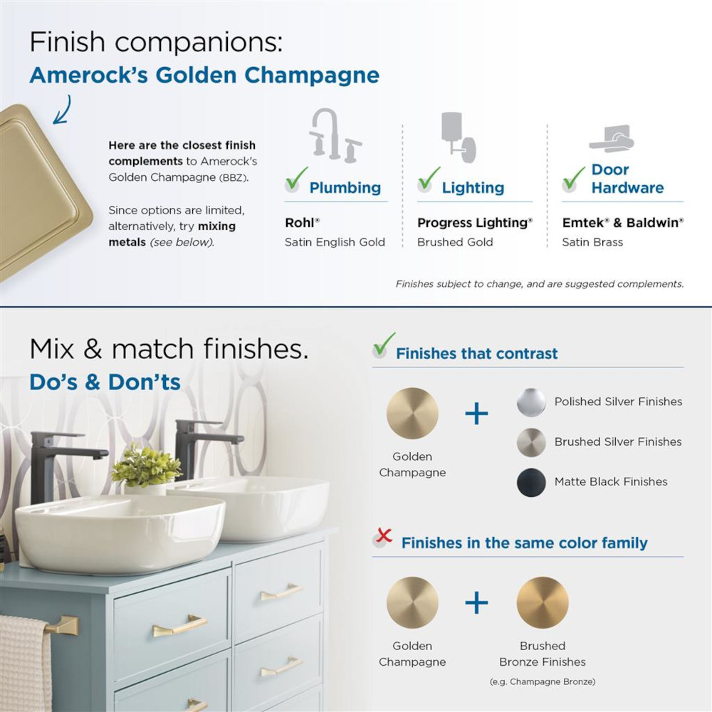 • Coordinates seamlessly with finishes from popular plumbing and lighting brands