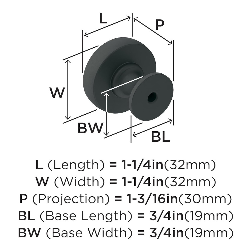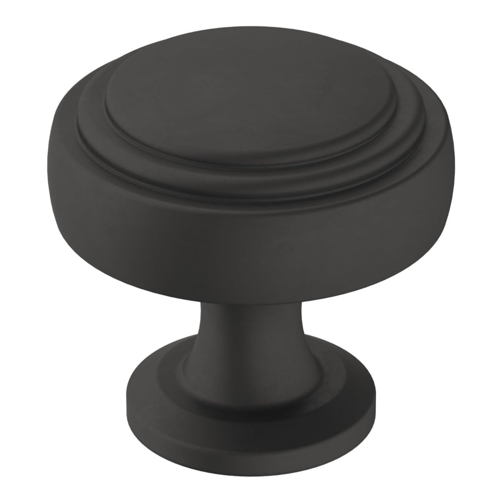 A timeless and refined composition, the Winsome collection embodies beautiful proportions that blend traditional and trendy. The Amerock BP36765FB Winsome 1-1/4 inch (32mm) Diameter Knob is finished in Matte Black.