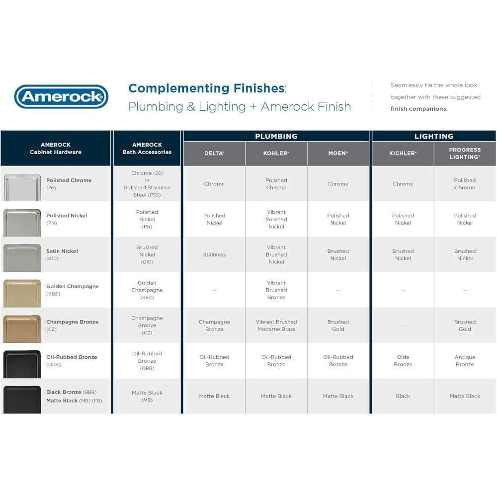 • Coordinates seamlessly with finishes from popular plumbing and lighting brands