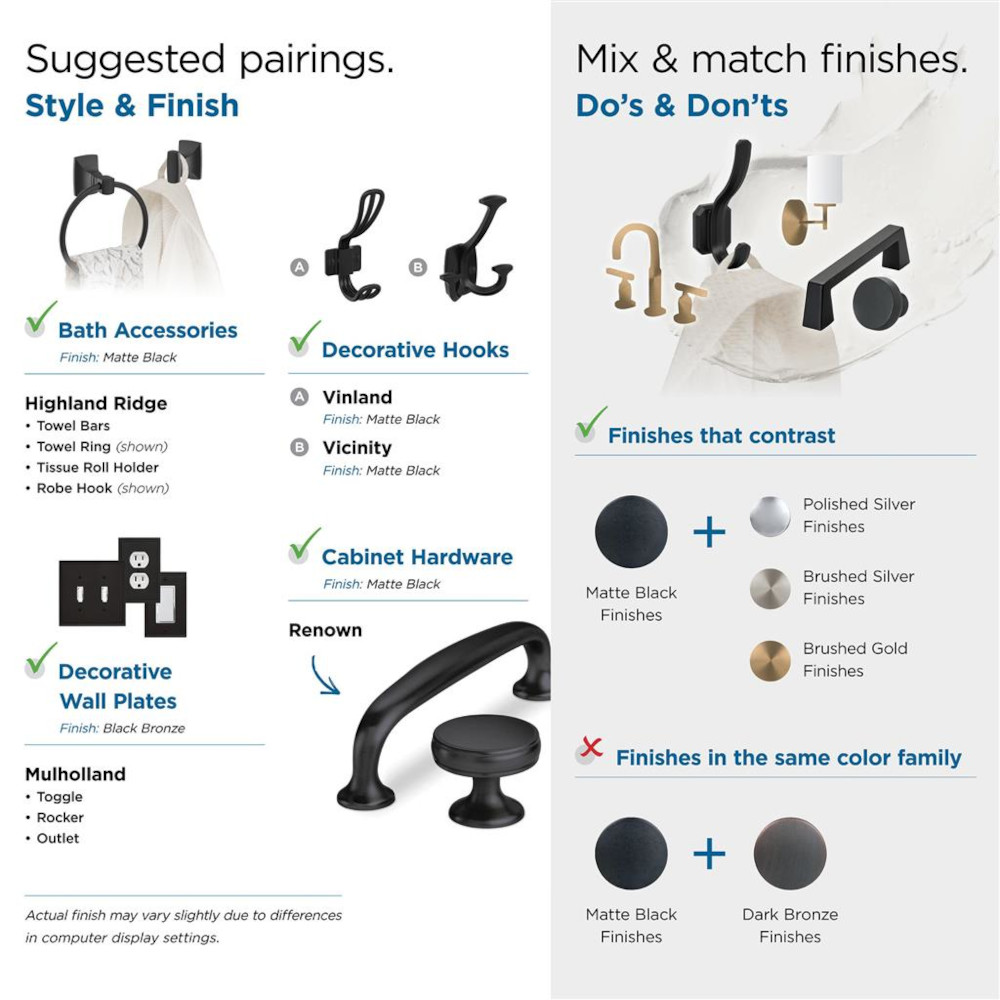 • Coordinates seamlessly with finishes from popular plumbing and lighting brands