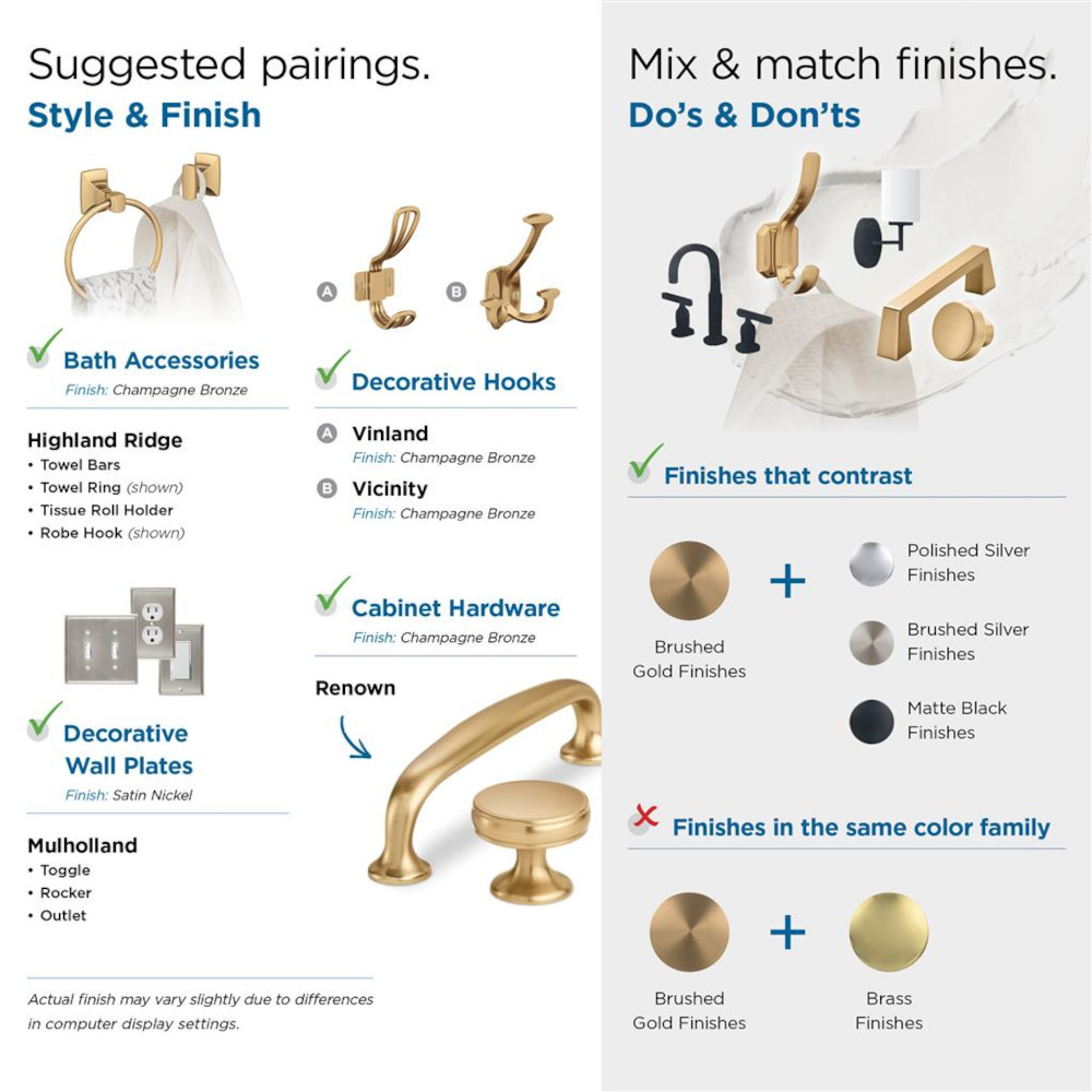 • Coordinates seamlessly with finishes from popular plumbing and lighting brands