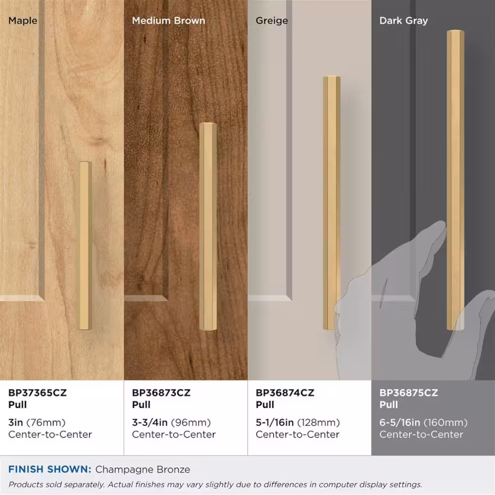 The Caliber collection brings a modern edge to cabinetry with a geometric bar pull design that adds a subtle twist to a classic shape. With its contemporary, chic styling, it delivers a clean, statement-making look that leaves a lasting impression in kitchens, bathrooms, and built-ins. The Amerock BP36875CZ Caliber 6-5/16 inch (160mm) Center-to-Center Pull is finished in Champagne Bronze.