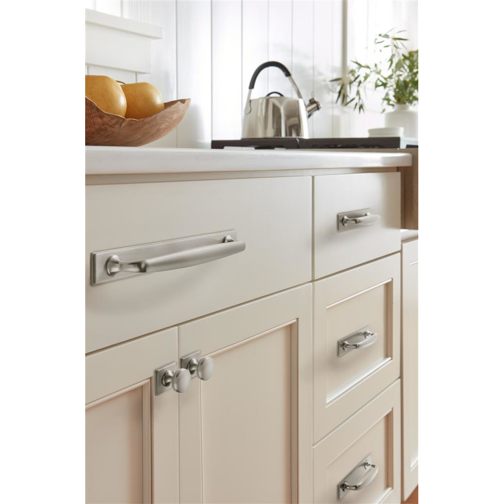 The Maymont backplate adds an simple yet effective upgrade to you drawers, doors & more! Its sleek and minimalist design pairs well with any other Amerock knobs to help give you the most customization out of your hardware.