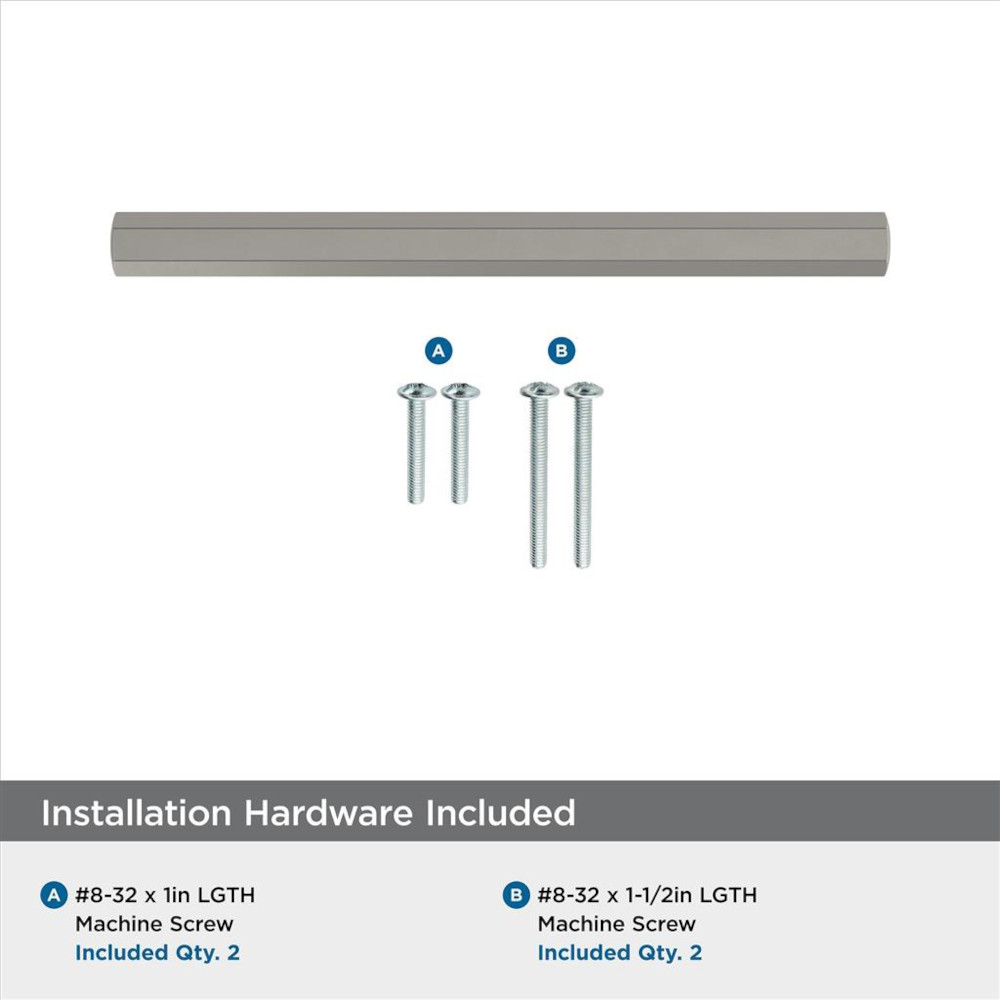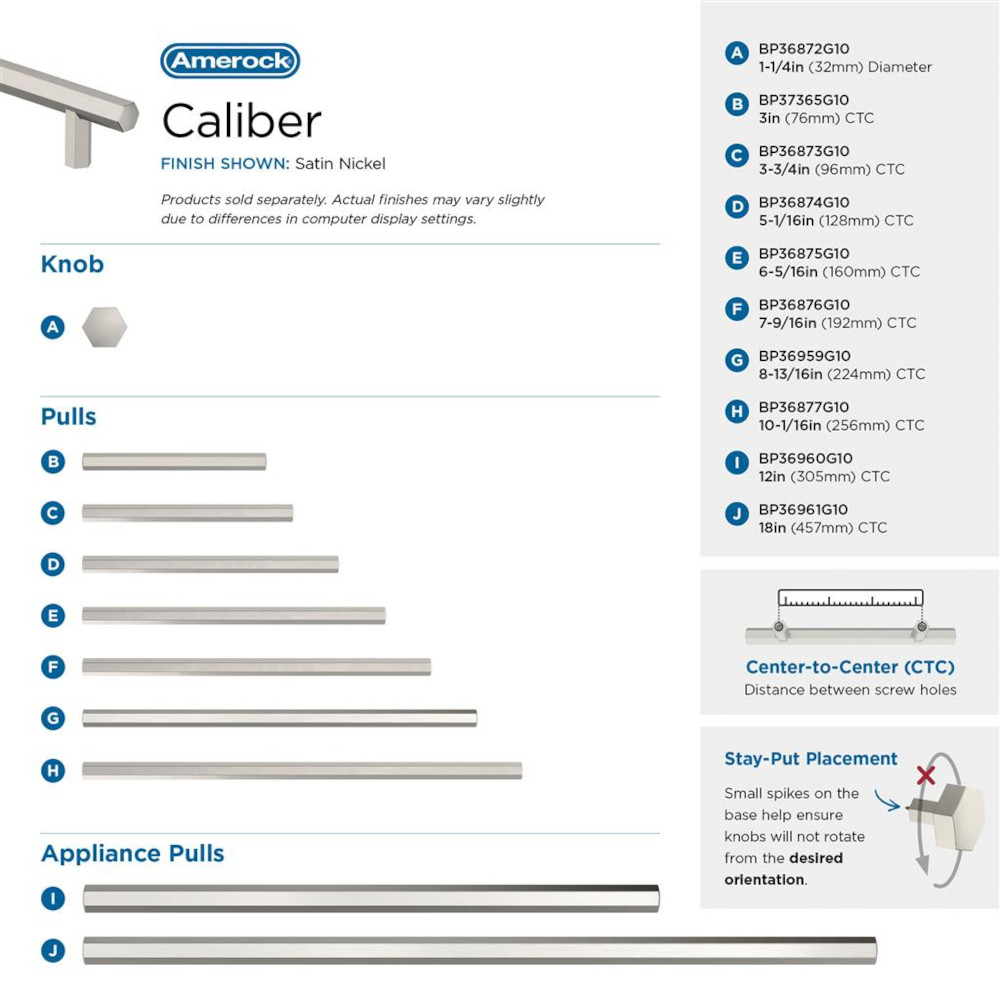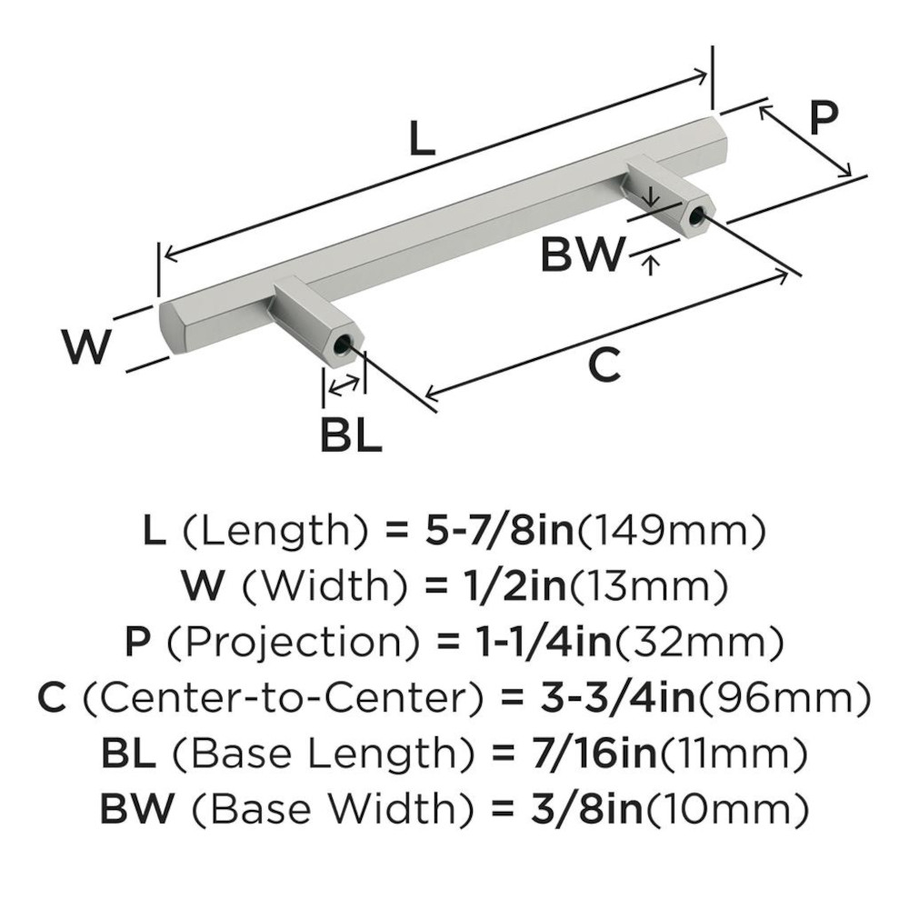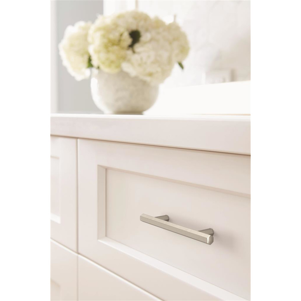 With a geometric design that adds a modern twist to the classic bar pull, the Caliber collection makes a lasting impression. Its clean lines and contemporary styling deliver a sleek, chic appeal that elevates any space. The Amerock BP36873G10 Caliber 3-3/4 inch (96mm) Center-to-Center Pull is finished in Satin Nickel.