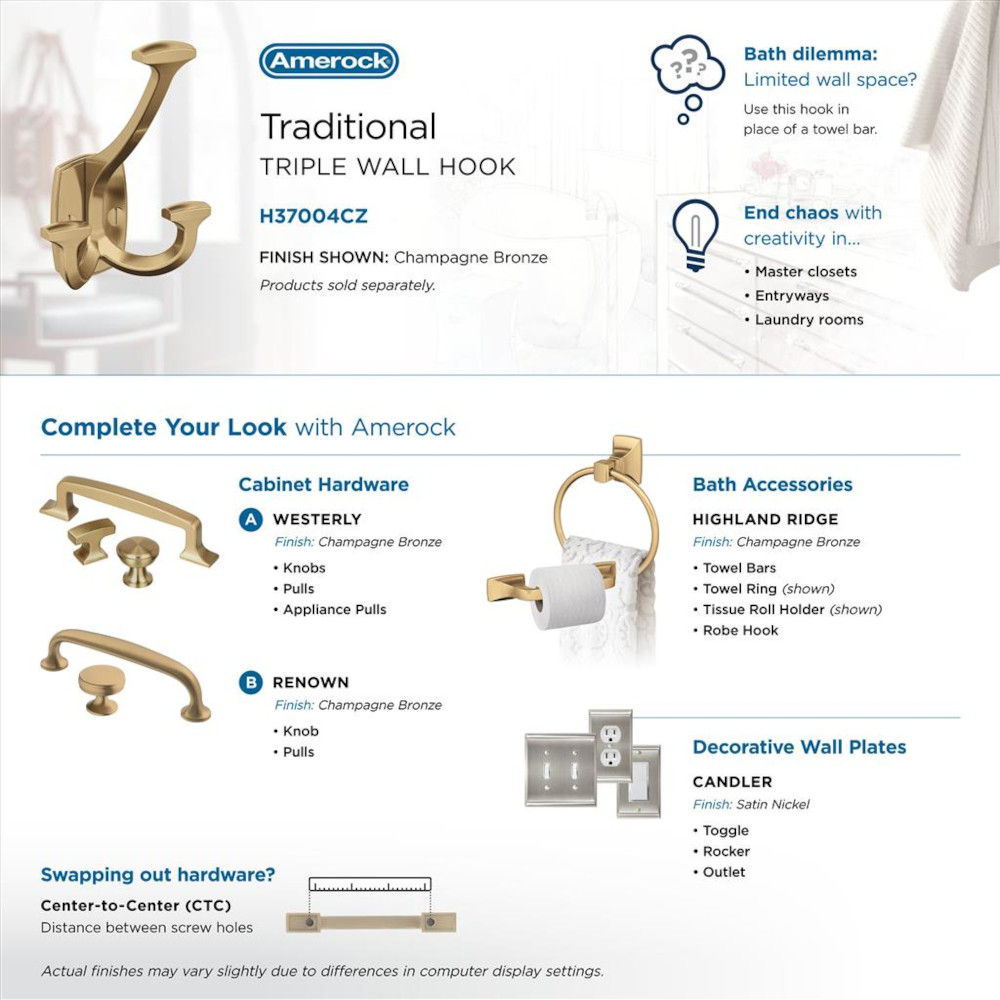 Amerock H37004CZ Decorative Vicinity Wall Hook – Champagne Bronze