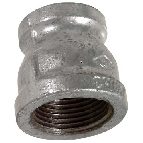 Galvanized malleable iron reducing coupling, 1 1/2 in. x 3/4 in. threaded ends, Sch40, rated to 150 PSI. | Aqua-dynamic Galvanized Reducing Coupling 5511-374 Aqua-Dynamic | Galvanized Reducing Coupling .