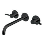 Elevate your bathroom with Aquabrass’s sleek Blade wallmount faucet in Black; features durable solid brass, water-efficient aerated flow, and CALGreen compliance.
