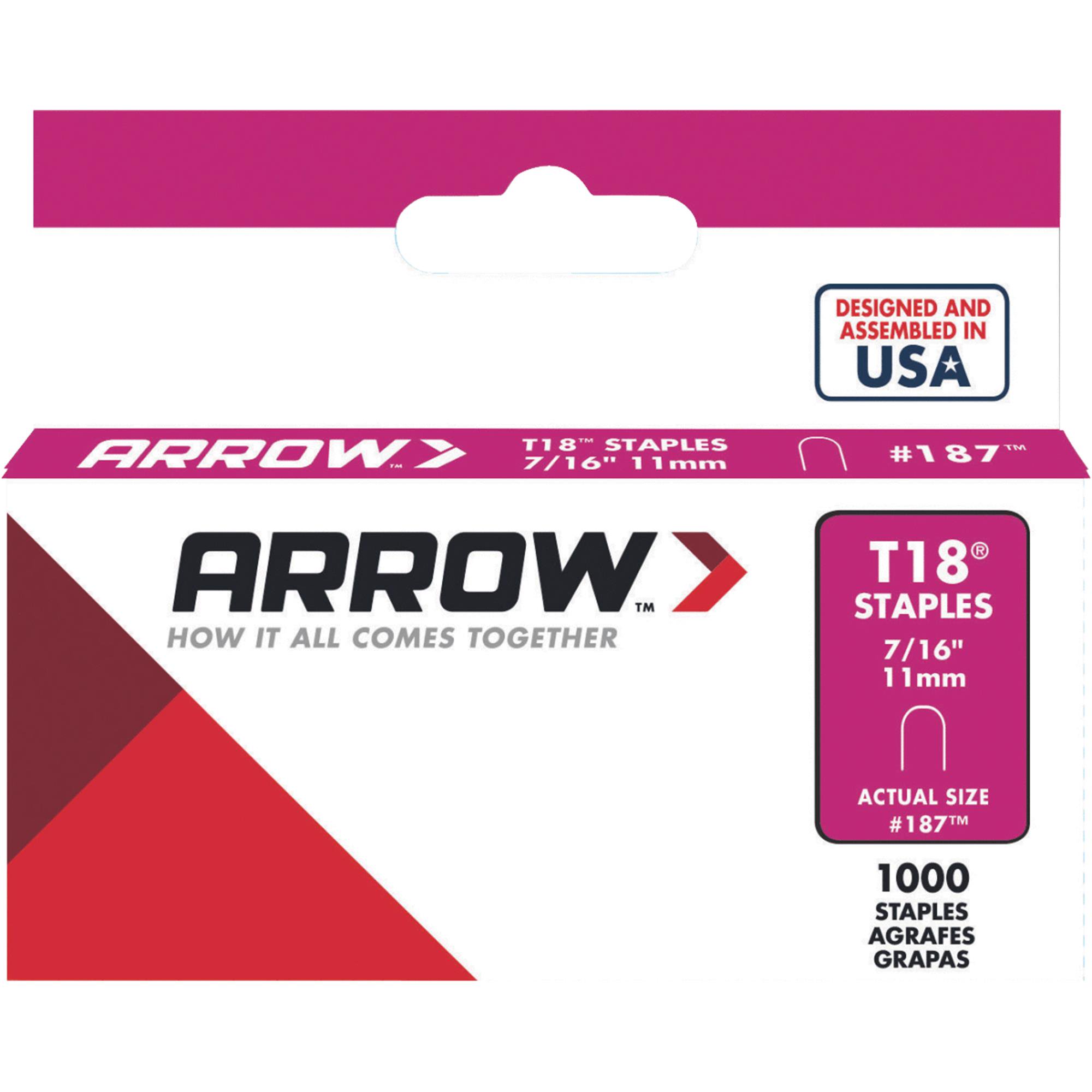 Arrow 187 7/16" T18 Staples, 1000 Pack