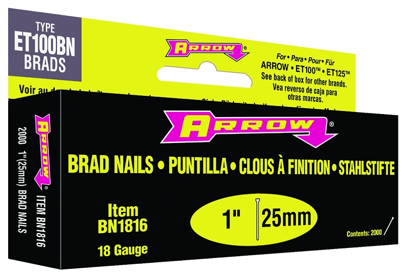 Arrow BN1816BCS Brad Nail, 1 in L, Steel, Plain, Smooth Shank