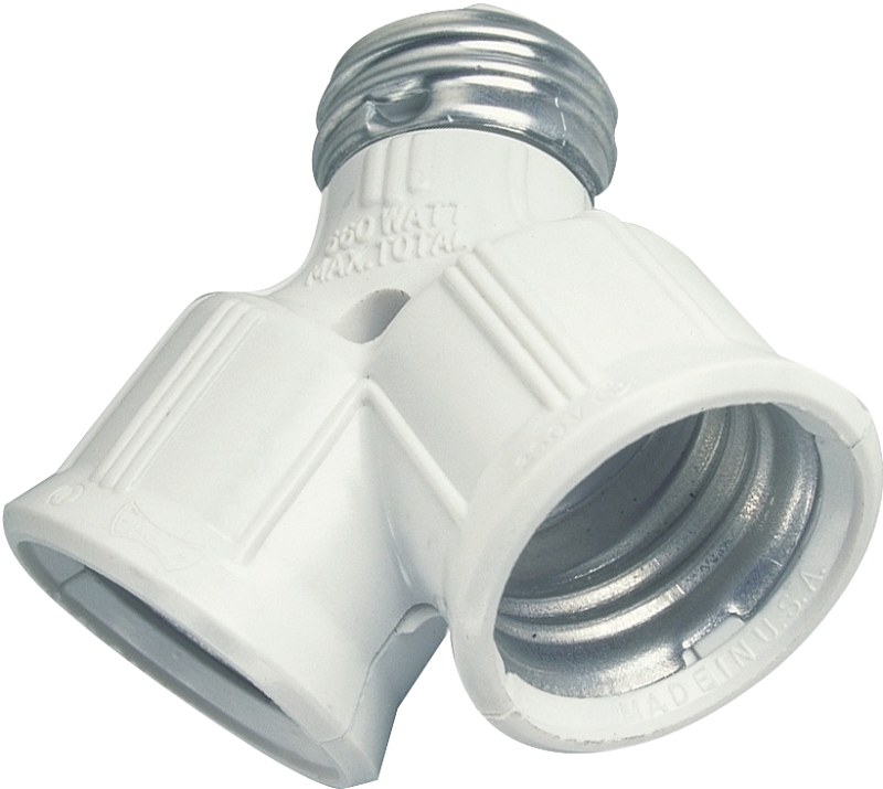 Polarized medium base socket adapters – socket to two sockets keyless outlets on adapters are 2-wire polarized. Pull chain for 718 controls lampholder. Side outlets are always on.