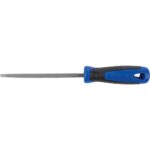 Triangular shape makes accessing hard to reach locations and squaring corners easier, Ideal for filing and sharpening gullets between saw teeth, Single-cut construction to smooth the edges of sheet metal with ease, Suitable for use on metals, mild steel, iron, plastics, stainless steel, hard rubber, and wood, Ergonomic handle with rubber for better control, comfort and safe work