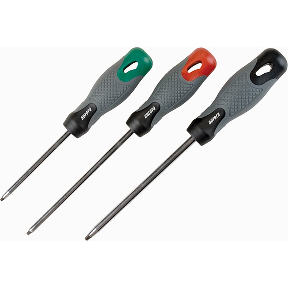 Industrial quality and strength, Chrome vanadium steel blade, Treated blade tip for a lifetime of performance, Extra large ergonomic handle for maximum torque and comfort, Screwdriver type indication on the base of the grip, Colour-coded handle for square tip, Contents:Square tip: #1, #2, #3, Meets ANSI standards