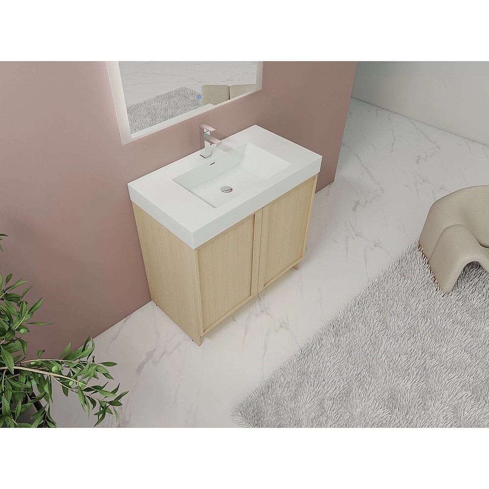 Bagno Italia Atlanta Vanity + Polymer Top – Light Oak/White Top