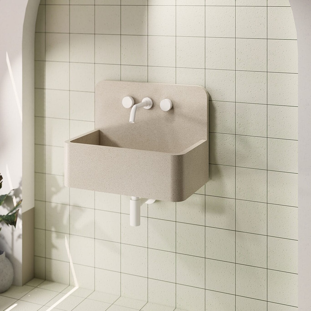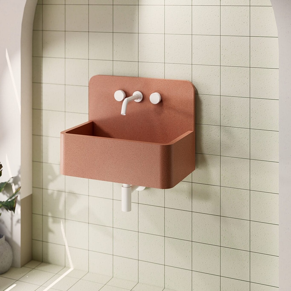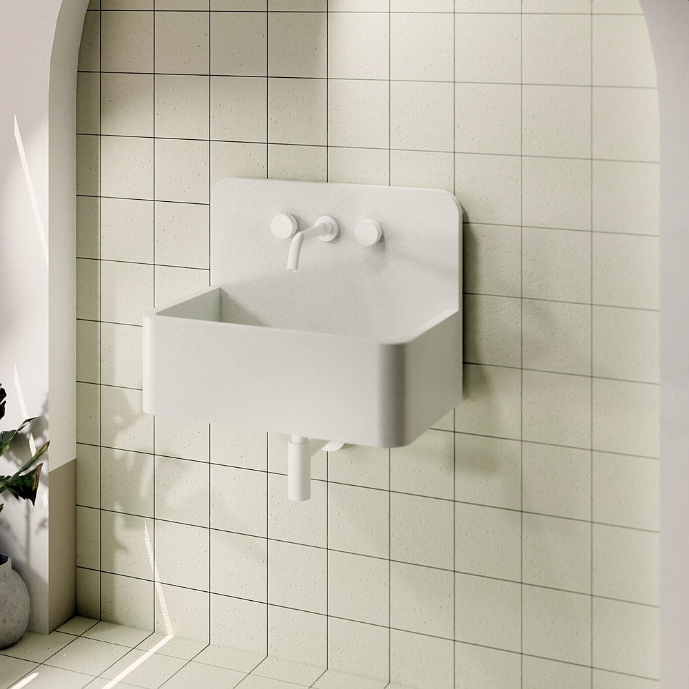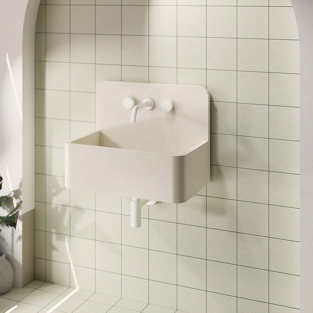This wall-mounted sink combines the charm of a vintage style with a modern twist. Its classic lines are enhanced by contemporary finishes, offering a perfect balance of nostalgia and current elegance, ideal for a sophisticated bathroom.