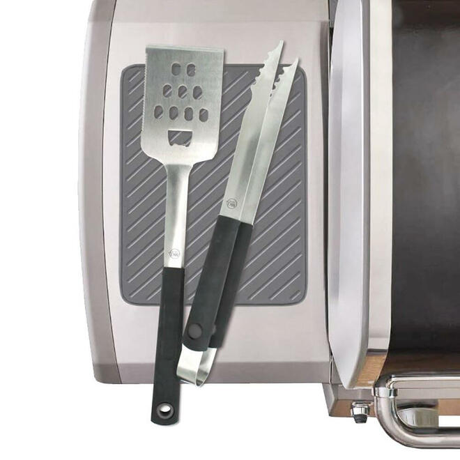 Crafted from strong, high-quality grey silicone, this mat is built for years of reliable use, standing up to the heat, grease, and wear that comes with regular grilling. Ribbed detailing across the surface promotes airflow, helping your tools dry faster between uses and keeping things cleaner throughout your cook.