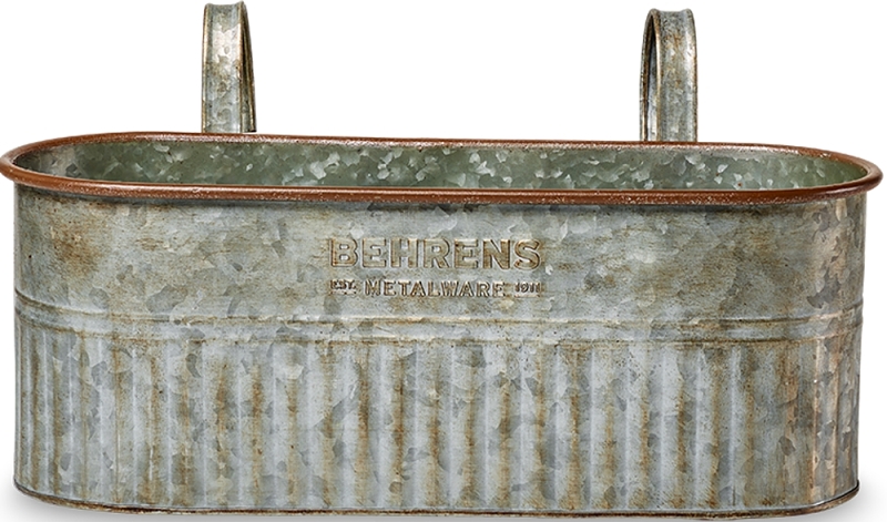 Behrens Garden Planter, Over-the-Rail, Aged, Steel, 8-3/4 in H, 9.9 in W, 16 in D