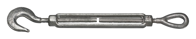 Ben-Mor Turnbuckle, Thread Size: 1/2 in, Take-Up Size: 6 in, End Fitting A: Hook, End Fitting B: Eye, Galvanized