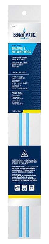 These flux-coated nickel silver brazing and welding rods are perfect for repairing household items such as bicycles, metal furniture, railings and radiators. Use to join carbon and alloy steels and most unlike metals such as nickel and brass. Intended for hard soldering, brazing and welding with a tensile strength of 60,000 to 85,000 psi and a working temperature of 1680 to 1700 deg F.