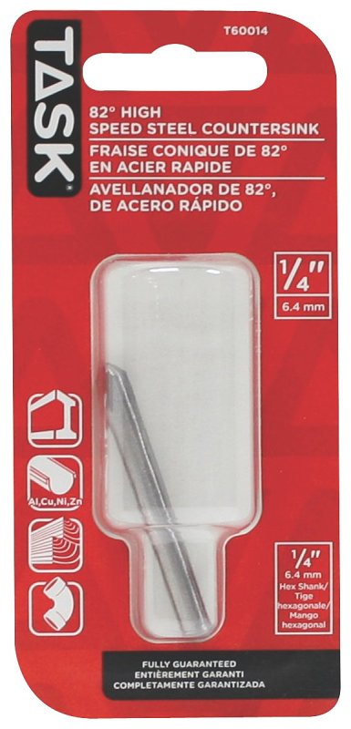 Task Drill Bit, Countersink, 1/4 in Dia, Number of Flutes: 5, Shank Type: Hex, Shank Diameter: 1/4 in, HSS, Applicable Materials: Aluminum, Brass, Copper, Iron, Plastic, Steel, Wood