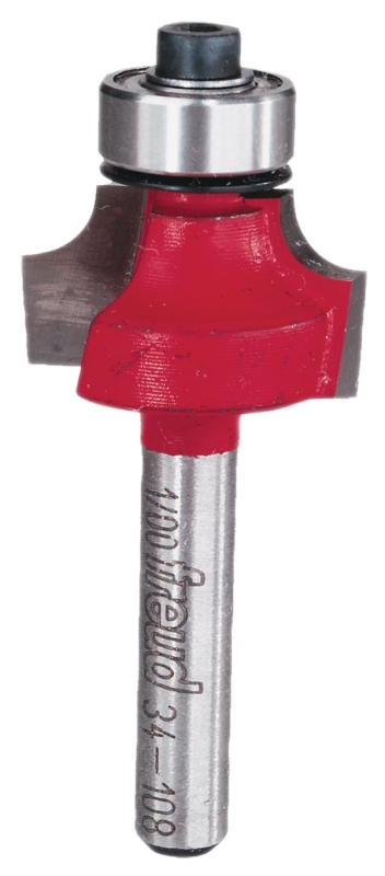 Bits are often used to soften the edge of furniture. Shear angle provides the smoothest cut available. Cuts all composition materials, plywood, hardwood and softwood. Use on handheld and table-mounted portable routers. 1/2 in bearing Dia.