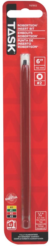 Task Two-Piece Screwdriver Bit, Drive Type: Robertson, Drive Size: #2, Steel, Red, 6 in L