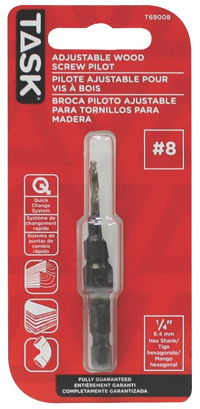 Task Screw Drill Bit, #8 Dia, Shank Type: Hex, Quick Change Shank: Yes, Shank Diameter: 1/4 in, Point Type: Pilot, Applicable Materials: Composition Board, Plastic, Wood, Suitable for: TASK and Similar 1/4 in Quick-Change Adapters