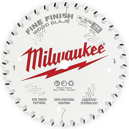 Milwaukee’s wood cutting, fine finish blades provide cleaner cuts and cutting efficiencies to improve your productivity. An ATB tooth pattern minimizes tearout in the cut material. An anti-friction coating keeps the blade cool while cutting and resists corrosion & gumming. Laser cutting technology creates the blade from 100% sheet steel to ensure a stable blade that increases cutting accuracy. Laser cut vibration slots minimize wobble and warping during use. A thin kerf design delivers faster cuts as well as more cuts per charge when using a cordless tool.