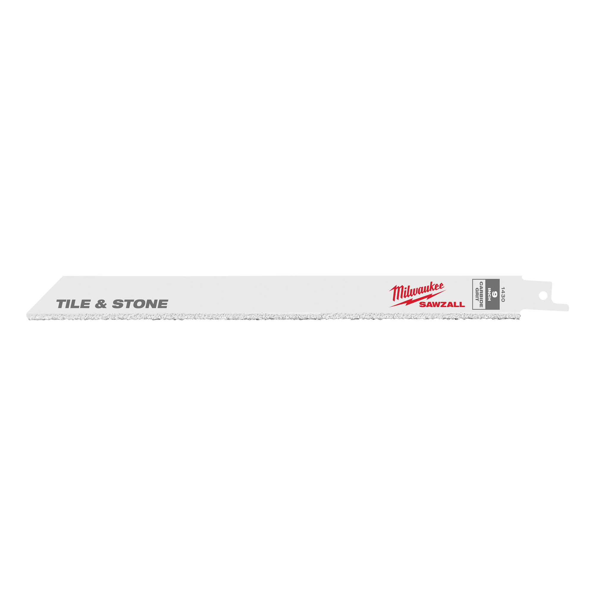 The Milwaukee 48-00-1431 9 in. Carbide-Grit Reciprocating Saw Blade is made from tungsten carbide to offer a long blade life. This blade features coarse grit for fast cutting. Milwaukee designs and manufactures Sawzall blades for the toughest professional applications. Materials, tooth configuration and heat treating are designed to maximize performance in specific cutting applications. Durability and endurance are the goal of every blade we make. This blade has a 1/2 in. universal tang that fits all Sawzall Reciprocating Saws and standard competitive saws.