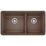 The PRECIS U 1 3/4 Double Bowl Undermount Kitchen Sink offers clean lines and a spacious dual bowl design. The PRECIS 33″ offers plenty of room for rinsing, washing and soaking. The 60/40 bowl split allows for washing larger items while still leaving the smaller bowl open. Made of SILGRANIT®, PRECIS kitchen sinks are engineered to withstand heavy cookware and hot bakeware. Silgranit sinks are not only strong but also beautiful, available in a range of nature-inspired colours that effortlessly complement the latest kitchen trends. Combine the PRECIS sink with a BLANCO faucet and accessories to create a BLANCO UNIT; a seamlessly integrated kitchen solution designed to transform kitchen chores into joyful experiences. Everything you need to drink, prep and clean, all in one place.