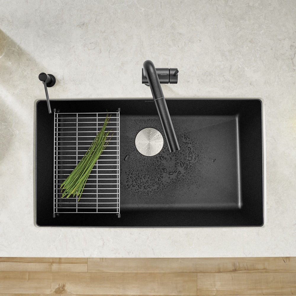 The PRECIS U SUPER SINGLE UNDERMOUNT KITCHEN SINK offers clean lines and a spacious single bowl design. One of BLANCO’s most popular sinks, the PRECIS SUPER SINGLE features an extra-large bowl, so kitchen items such as baking sheets, pots and pans can be easily maneuvered. Made of SILGRANIT®, PRECIS kitchen sinks are engineered to withstand heavy cookware and hot bakeware. Silgranit sinks are not only strong but also beautiful, available in a range of nature-inspired colours that effortlessly complement the latest kitchen trends. Combine the PRECIS sink with a BLANCO faucet and accessories to create a BLANCO UNIT; a seamlessly integrated kitchen solution designed to transform kitchen chores into joyful experiences. Everything you need to drink, prep and clean, all in one place.