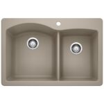 The DIAMOND 1-3/4 Double Bowl Dual Mount Kitchen Sink features a 60/40 bowl design, offering plenty of room for rinsing, washing, soaking, spraying and straining operations. The 60/40 bowl split allows for washing larger items while still leaving the smaller bowl open. Made of SILGRANIT®, DIAMOND kitchen sinks are engineered to withstand heavy cookware and hot bakeware. Silgranit sinks are not only strong but also beautiful, available in a range of nature-inspired colours that effortlessly complement the latest kitchen trends. Combine the DIAMOND sink with a BLANCO faucet and accessories to create a BLANCO UNIT; a seamlessly integrated kitchen solution designed to transform kitchen chores into joyful experiences. Everything you need to drink, prep and clean, all in one place.
