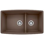 The BLANCO PERFORMA U 1 3/4 DOUBLE BOWL UNDERMOUNT KITCHEN SINK with LOW DIVIDE features a 60/40 bowl design, offering plenty of room for rinsing, washing and soaking. The 60/40 bowl split allows for washing larger items while still leaving the smaller bowl open. Made of SILGRANIT®, PERFORMA kitchen sinks are engineered to withstand heavy cookware and hot bakeware. Silgranit sinks are not only strong but also beautiful, available in a range of nature-inspired colours that effortlessly complement the latest kitchen trends. Combine the PERFORMA double bowl sink with a BLANCO faucet and accessories to create a BLANCO UNIT; a seamlessly integrated kitchen solution designed to transform kitchen chores into joyful experiences. Everything you need to drink, prep and clean, all in one place.