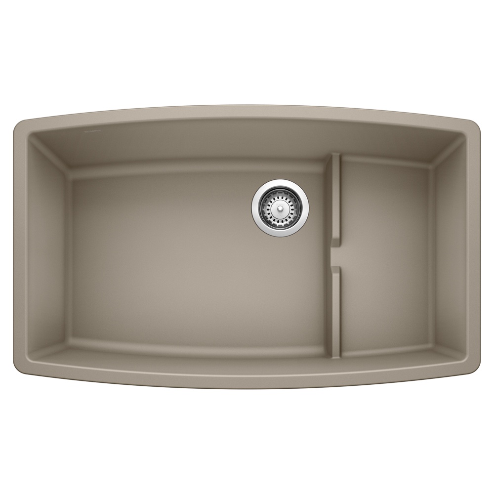 The PERFORMA CASCADE Undermount Kitchen Sink offers a spacious single bowl design with an integrated second level for drying, depositing and draining. The two sections allow you to separate clean and dirty dishes. Made of SILGRANIT®, PERFORMA kitchen sinks are engineered to withstand heavy cookware and hot bakeware. Silgranit sinks are not only strong but also beautiful, available in a range of nature-inspired colours that effortlessly complement the latest kitchen trends. Combine the PERFORMA CASCADE sink with a BLANCO faucet and accessories to create a BLANCO UNIT; a seamlessly integrated kitchen solution designed to transform kitchen chores into joyful experiences. Everything you need to drink, prep and clean, all in one place.