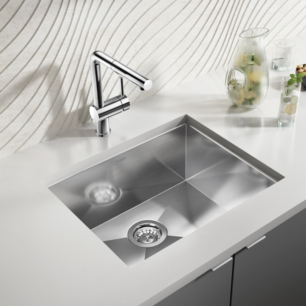 Everyday convenience meets modern design. The QUATRUS R0 22″ Undermount Stainless Steel Kitchen Sink is a must-have for anyone looking to maximize prep space; its compact size makes it ideal for smaller areas such as kitchen islands, bars or even butler pantries. German-engineered with corrosion-resistant stainless steel for long-lasting durability and zero radius corners for a modern look —the QUATRUS R0 22″ sink makes kitchen life easy. Combine the QUATRUS R0 22″ sink with a BLANCO faucet and accessories to create a BLANCO UNIT; a seamless, fully integrated, kitchen solution designed to transform kitchen chores into joyful experiences. Everything you need to drink, prep and clean, all in one place.