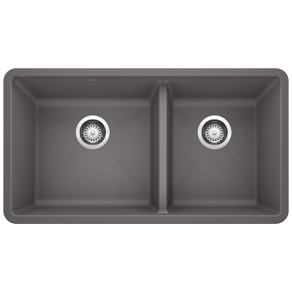 Blanco 401396 Precis SILGRANIT 33" 60/40 Double Bowl Undermount Kitchen Sink – Cinder