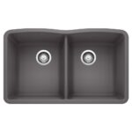 The DIAMOND U 2 Undermount Kitchen Sink features a 50/50 bowl design, offering plenty of room for rinsing, washing and soaking. The ideal choice for those who wash dishes by hand, you can stack dirty dishes and utensils in one sink while prepping in the other. Made of SILGRANITยฎ, DIAMOND kitchen sinks are engineered to withstand heavy cookware and hot bakeware. Silgranit sinks are not only strong but also beautiful, available in a range of nature-inspired colours that effortlessly complement the latest kitchen trends. Combine the DIAMOND sink with a BLANCO faucet and accessories to create a BLANCO UNIT; a seamlessly integrated kitchen solution designed to transform kitchen chores into joyful experiences. Everything you need to drink, prep and clean, all in one place.