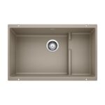 The PRECIS CASCADE UNDERMOUNT KITCHEN SINK offers clean lines and a spacious single bowl design with an integrated second level for drying, depositing and draining. The two sections also allow you to separate clean and dirty dishes. Made of SILGRANIT®, PRECIS kitchen sinks are engineered to withstand heavy cookware and hot bakeware. Silgranit sinks are not only strong but also beautiful, available in a range of nature-inspired colours that effortlessly complement the latest kitchen trends. Combine the PRECIS sink with a BLANCO faucet and accessories to create a BLANCO UNIT; a seamlessly integrated kitchen solution designed to transform kitchen chores into joyful experiences. Everything you need to drink, prep and clean, all in one place.