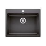 The PRECIS 25” SINGLE BOWL ADA/CSA KITCHEN SINK offers clean lines and a simple but spacious single bowl design. This ADA-compliant kitchen sink features a reduced bowl depth for wheelchair accessibility and a rear-positioned drain hole, which helps provide knee clearance when the sink is used from a seated position. This kitchen sink is made of SILGRANIT, a patented, certified granite composite material that is engineered to take on the toughest kitchen tasks. Beautiful and highly functional with its non-porous, hygienic surface, it pushes away liquids and residue resulting in a low maintenance, easy to clean, long-lasting material.