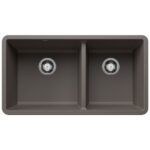 The PRECIS U 1 3/4 Double Bowl Undermount Kitchen Sink offers clean lines and a spacious dual bowl design. The PRECIS 33″ offers plenty of room for rinsing, washing and soaking. The 60/40 bowl split allows for washing larger items while still leaving the smaller bowl open. Made of SILGRANIT®, PRECIS kitchen sinks are engineered to withstand heavy cookware and hot bakeware. Silgranit sinks are not only strong but also beautiful, available in a range of nature-inspired colours that effortlessly complement the latest kitchen trends. Combine the PRECIS sink with a BLANCO faucet and accessories to create a BLANCO UNIT; a seamlessly integrated kitchen solution designed to transform kitchen chores into joyful experiences. Everything you need to drink, prep and clean, all in one place.