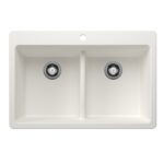 Every space deserves to be beautiful. BLANCO’s LIVEN 33″ 50/50 double bowl kitchen sink is ideal for multitasking, with a convenient double bowl configuration that allows you to soak dishes in one bowl while rinsing in the other. The convenient low divide makes maneuvering large pots and pans a breeze. Made of SILGRANIT, LIVEN kitchen sinks are engineered to withstand heavy cookware and hot bakeware. SILGRANIT sinks are not only strong but also beautiful, available in a range of nature-inspired colors that effortlessly complement the latest kitchen trends. Combine the LIVEN double bowl sink with a BLANCO faucet and accessories to create a BLANCO UNIT; a seamlessly integrated kitchen solution designed to transform kitchen chores into joyful experiences. Everything you need to drink, prep and clean, all in one place.