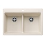 Every space deserves to be beautiful. BLANCO’s LIVEN 33″ 50/50 double bowl kitchen sink is ideal for multitasking, with a convenient double bowl configuration that allows you to soak dishes in one bowl while rinsing in the other. The convenient low divide makes maneuvering large pots and pans a breeze. Made of SILGRANIT, LIVEN kitchen sinks are engineered to withstand heavy cookware and hot bakeware. SILGRANIT sinks are not only strong but also beautiful, available in a range of nature-inspired colors that effortlessly complement the latest kitchen trends. Combine the LIVEN double bowl sink with a BLANCO faucet and accessories to create a BLANCO UNIT; a seamlessly integrated kitchen solution designed to transform kitchen chores into joyful experiences. Everything you need to drink, prep and clean, all in one place.