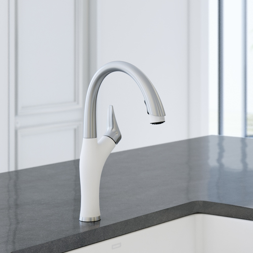 Winner of the Red Dot design award, the ARTONA collection is defined by artistic forms and hardworking features. Available in a wealth of premium color-coordinated finishes, the ARTONA HIGH-ARC PULL-DOWN KITCHEN FAUCET features a gooseneck spout and a wavy, organic body. Perfect for transitional kitchens or laundry rooms, the ARTONA adds a sculptural element to your space. Match your SILGRANIT sink with a color-coordinated faucet and breathe new life into your space with a pop of color.