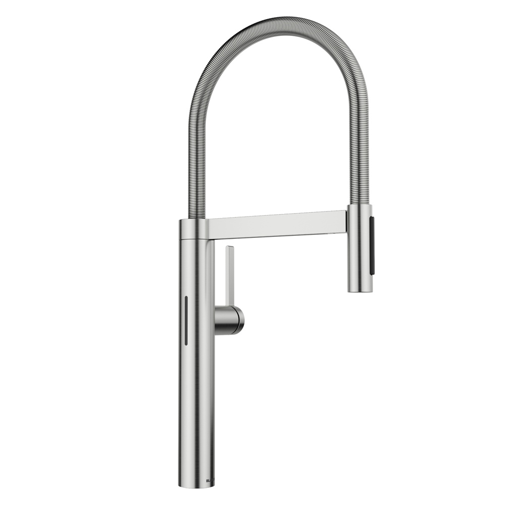 Wave goodbye to messy fingerprints and germs with BLANCO’s iconic semi-pro sensor kitchen faucet. Designed to streamline your kitchen routine and offers an optimal solution for effortless meal prep and clean-up, the BLANCOCULINA II Sensor faucet features motion-sensor technology with two sensors at intuitive access points; the pot filling sensor streamlines meal prep, and the handwashing sensor prevents spreading mess with touchless motion. Use cleaning mode to lock water flow. Beautifully constructed of solid brass, this faucet enhances performance with iconic style. Easily pair the CULINA Sensor faucet with a BLANCO sink, accessories and organization for the ultimate home-chef BLANCO UNIT.