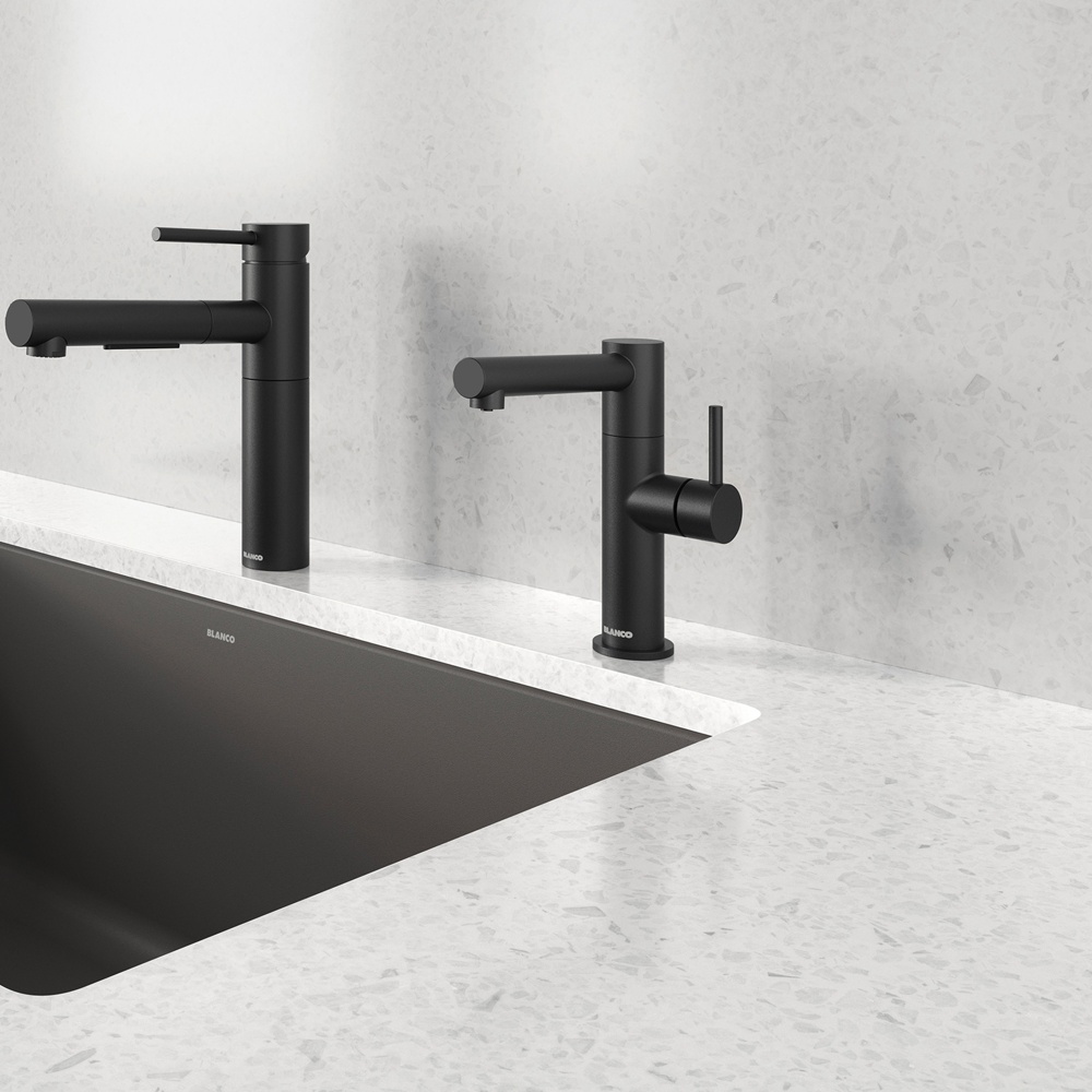 Elevate your beverage service with the ALTA II Beverage Faucet. Providing water on demand right at the kitchen sink station, the long spout of the cold-water faucet makes filling tall glasses and pitchers effortless. Connect to a BLANCO filter starter set to ensure hassle-free access to filtered water. Easily pair the ALTA II Beverage faucet with an ALTA II kitchen faucet for a cohesive, sleek look in the same finish. Combine the faucets with a BLANCO sink, filtration and organization for an optimized BLANCO UNIT.