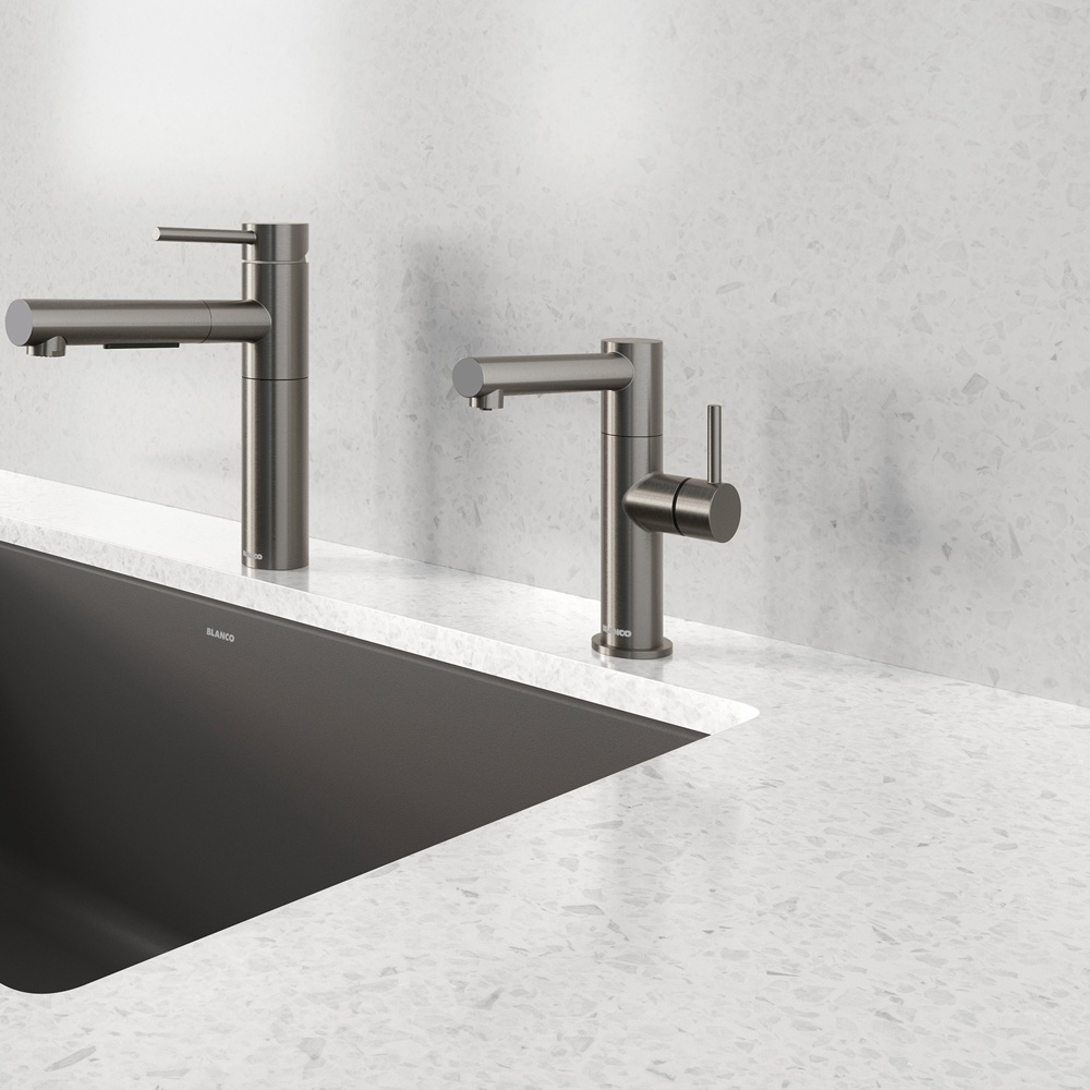 Elevate your beverage service with the ALTA II Beverage Faucet. Providing water on demand right at the kitchen sink station, the long spout of the cold-water faucet makes filling tall glasses and pitchers effortless. Connect to a BLANCO filter starter set to ensure hassle-free access to filtered water. Easily pair the ALTA II Beverage faucet with an ALTA II kitchen faucet for a cohesive, sleek look in the same finish. Combine the faucets with a BLANCO sink, filtration and organization for an optimized BLANCO UNIT.